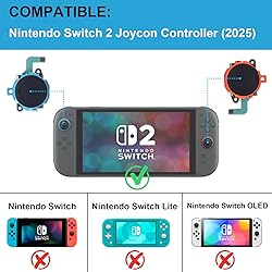 Compatibble with Joycon controller of Nintendo Switch 2 (2025 Released); Include with the Right and Left Joystick. High Quality joystick replacement fixing the drift, stuttering, blind spots, dead zones, no click, non-centered issues, bring your controller back to life Complete tool set to finish the repair, this is the perfect solution to make your controller working like new again. No need to spend $80 for a brand new controller. Package inlude the "Y1.5" Screwdriver and "+1.5" Cross Screwdriver repair tools, tweezers, and pry tools. Effectively eliminates stick drift issues, providing a reliable solution for uninterrupted gaming sessions Durable construction rated for 5,000,000+ rotations (10x longer than standard sticks) with dust/water resistance.