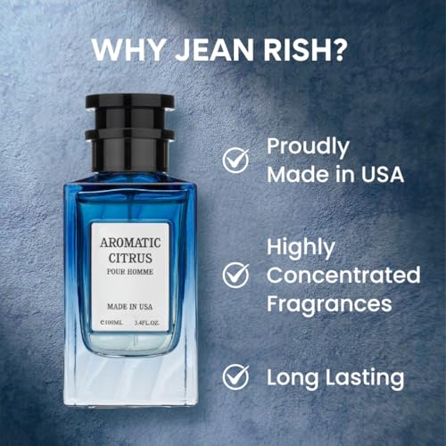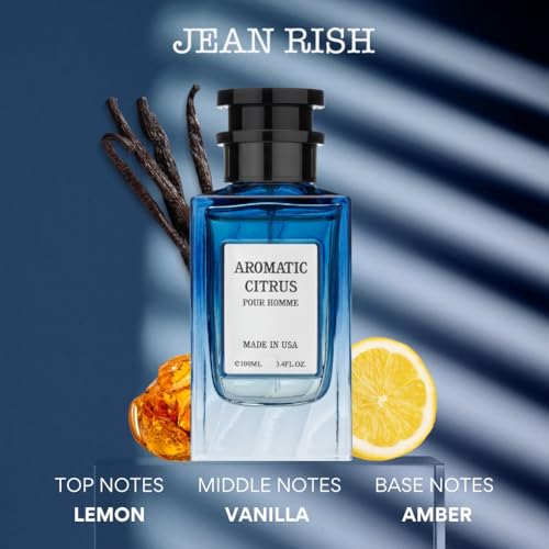 Jean Rish Aromatic Citrus, Eau de Parfum for Men (3.4 Fl Oz / 100ml) with Lemon, Vanilla & Amber – Long Lasting and Luxury Fragrance, Made in USA