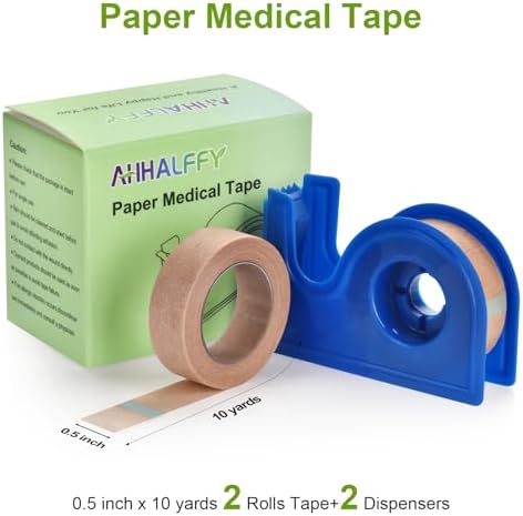 - Medical Tape for Wound Care: 0.5 inch×10 yards ( 1.25cm×9.14m) per roll , 2 Rolls with 2 Dispensers per box, breathable paper tape medical is comfortably secures gauze and dressings, great for wound care