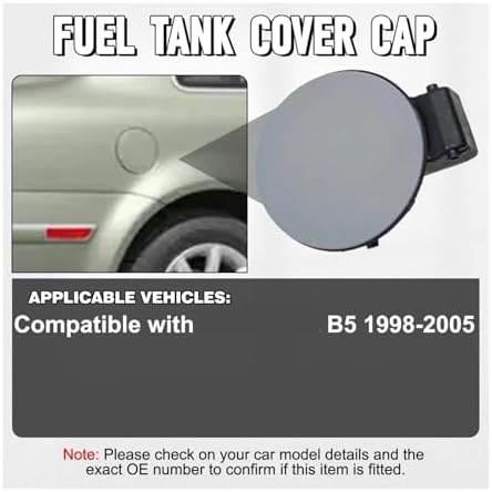 Compatibility: Designed for compatibility with VW Passat B5 1998-2005, aligning with part numbers 3BD809857, 3BD 809 857 for an accurate fit (NOTE: Please check on your car model details and exact OE number to confirm if this item is fitted)Specifications:Product Name: Fuel Tank Door CoverMaterial: ABSColor: Unpainted Grey (Actual color may be different from the pictures due to the different shooting equipment)Part Number: 3BD809857, 3BD 809 857Note: Please check on your car model details and exact OE number to confirm if this item is fittedFitment:Compatible with VW Passat B5 1998-2005Note: Please check on your car model details and exact OE number to confirm if this item is fittedPackage Included:1 x Fuel Tank Door CoverWelcome to my store! Here we provide practical accessories that are suitable for multiple vehicle models, from daily maintenance to component upgrades, with a complete range of products and reliable quality. We are willing to provide professional services to help you solve the needs of your car.