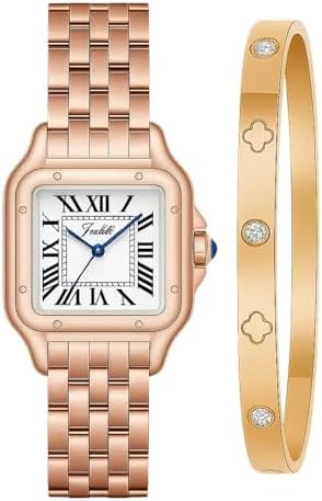 Gold Watches for Women, Small Vintage Roman Dial, Love Bracelet, Elegant Women's Jewelry Set