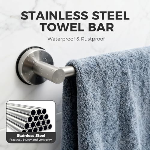 - 【Easy Installation】No drilling,no tools,and zero damage to walls.This suction cup towel bar is designed for hassle-free repositioning or removal,ensuring your bathroom walls stay pristine while setting up your perfect towel storage.