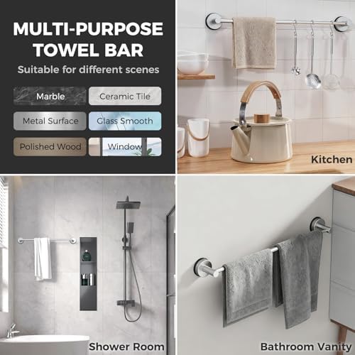 Adjustable Suction Cup Towel Bar for Bathroom Wall,14.6Inch~24 Inch Towel Racks for Bathroom,Stainless Steel Bath Towel Holder for Shower(Brushed Silver)
