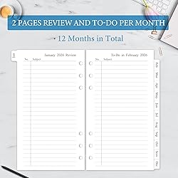 Refillable Planner: 3.8"x6.8". The pocket size planner refills are compatible with 6 ring binders. 2026 Planner Overview: 12 Month monthly planning calendar pages, from Jan. 2026 to Dec. 2026. Each month has a Monthly tab so you can find it quickly. Monthly Planner: Each month includes a monthly calendar, monthly review, monthly TO-DO, offers ample lined writing space. Thick Acid-free Paper: Premium paper, smooth, wear-resistant, will not bleed whether it is fingerprinted or written. A Great Gift: This is a very meaningful gift for all ages, use this perspective to help see where your time goes! Share it with your family, friends.