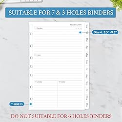 Refillable Planner: 5.5"x8.5". The medium size planner refills are compatible with 7 or 3 ring binders. 12 Month 2026 Planner Overview: Refill covers 12 months (Jan 2026 - Dec 2026), monthly planning calendar pages. Each month has a Monthly tab so you can find it quickly. Weekly Planning: Weekly view pages contain enough ruled space for your detailed daily planning, appointments, activities and so on. A journey of focus and achievement unfolds week by week. 100gsm Thick Acid-free Paper: Premium paper, smooth, wear-resistant, will not bleed whether it is fingerprinted or written. A Great Gift: This is a very meaningful gift for all ages, use this perspective to help see where your time goes! Share it with your family, friends.
