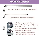 【Compatible Model】:This screwdriver replacement is specially designed for Google Nest (Wired) Doorbell 2nd Gen,these screws provide a perfect fit. Plaese notice:Not compatible with Google Nest Doorbell (Wired, 3rd Gen) 【High-Quality Material】: Screwdriver tool and screws are made of good stainless steel material, which is durable and not easy to wear and tear 【L-Shaped Design】:Doorbell screwdriver that use L-Shape is easy to hold and rotate, very strong and durable, ergonomic handle, non-slip design 【Easy to Operate】:No professional skills required, L-shaped structure fits the hand's strength habits, even beginners can easily operate it 【Replacement Security Screws】:After inserting the top of the doorbell, it can be firmly fixed on the wall bracket