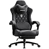 Dowinx Gaming Chair with Heated Massage Lumbar Support,Big and Tall Fabric Gaming Chairs for Adults with Footrest, Ergonomic Computer Game Chair with Poket Spring Cushions, 350lbs, Black