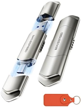 MOVE SPEED USB Drive 2TB External SSD 1000MB/s USB 3.2 Gen2+USB C Dual Ports Portable Zinc Alloy Thumb Drive Stick, External Drive with Metal Casing for iPhone 15/16/17 Series/Mac/Android Phone