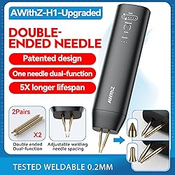 Innovative Dual-Tip Design: Features both a micro needle tip for precision welding on thin materials and a macro cone tip for deep penetration on thick materials, doubling versatility and durability in one tool. Precision Micro Welding: The micro needle tip achieves ultra-thin material welding with high accuracy (+0.05mm), preventing piercing and ensuring clean, reliable connections. Efficient Macro Welding: The macro cone tip delivers balanced heat distribution for deep welding on thicker materials, reducing the heat-affected zone by 30% to prevent weak joints. Premium Material & Long Life: Constructed from high-conductivity aluminum oxide copper, it offers exceptional electrical performance and a extended service life of over 5000 cycles. Easy to Use - ONLY 2 buttons, our spot welder the buttons are labeled,easy to use. The battery spot welder does not need to leave our palm. Press and hold the power switch button on the side for 2 seconds with your middle finger, press the gear adjustment button on the top with your index finger once, and press and hold for 2 seconds to adjust the automatic or manual mode. NO Spot Welding Pen------No need for a spot welding pen when going out or at home, handheld spot welder that does not require additional spot welding pens, carry it with you and it's convenient to go anywhere. It combines the built-in power supply and welding pen into one, making it easy to weld without the need for an external welding pen. Exquisite Packaging - Our packaging includes a handheld spot welder, 2-meter nickel plated sheet, 1 piece of frosted paper, 1 pair of welding pins, 1 Type-c charging cable, and a manual. Our packaging is very exquisite, making it a very worthwhile gift for your loved one who loves battery DIY and friends.