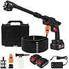 - 🚗【Long-Lasting Power & Durability】2 high-capacity removable batteries ensure extended runtime for gardens,driveways,or vehicles.Assemble in minutes and enjoy hassle-free operation with ergonomic handles and a tangle-free design,while the waterproof construction ensures reliable outdoor performance.Use it as a lawn sprinkler,plant irrigator,or foam cannon for car washes—the extended 5m hose and quick-connect adapters simplify setup.