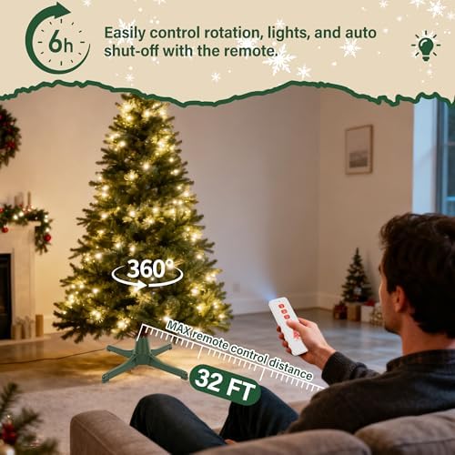 - 【Upgraded Remote Control & Timer】- Effortlessly control the Christmas tree turning base's rotation, lighting, and 6-hour auto-off timer with the included wireless remote. No need to bend over – enjoy convenience and energy savings at the touch of a button. (2 AAA batteries not included)