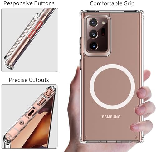 Samsung Galaxy Note 20 Ultra Case Magnetic Clear Case – Military-Grade Drop Protection, Anti-Yellowing Hybrid TPU Cover, Wireless Charging Compatible