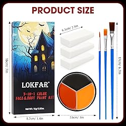 PROFESSIONAL FACE BODY PAINT KIT -- This Halloween makeup kit contains Black, Red, and Orange face paints, along with 3 professional makeup brushes with different tip sizes and 3 soft, skin-friendly stippling sponges, specially tailored for Halloween character makeup. It features a waterproof and sweat-resistant oil-based formula with high pigmentation. It is easy to apply and blend, and is resistant to fading, cracking, flaking, or caking. Easily create traditional Halloween costumes and various scary character looks. INTENSE COLOR & FULL COVERAGE -- Featuring a high-pigment formula that delivers true-to-life, fade-resistant color with long-lasting vibrancy. Just one application is all you need for rich, brilliant color—no layering required! The creamy texture glides on smoothly, providing powerful coverage that hides imperfections effortlessly. Perfect for both large body areas and intricate facial details, it empowers you to create stunning Halloween characters with ease! BUILDABLE & BLENDABLE -- This Halloween face paint kit features a fine, lightweight cream texture that glides on smoothly and blends effortlessly. The buildable formula allows you to layer color intensity as desired—apply a thin layer for a sheer wash of color, or layer it on for bold, opaque full coverage. Its exceptional blendability ensures seamless color transitions, enabling you to soften edges for professional finishes or create stunning gradient effects with artistic flair. SAFE & SKIN-FRIENDLY INGREDIENT -- Vegan and cruelty-free. This Halloween face makeup kit is made with a gentle, all-natural formula that is hypoallergenic, gluten-free, non-toxic and non-irritating. Suitable for sensitive skin and all skin types. Warm Tips: Please perform a patch test before use. Additionally, as this is an oil-based face paint, we strongly recommend using it with a setting product to make the makeup last longer and avoid smudging and transfer. OCCASIONS & MULTI-USE -- Black red orange face body paint is suitable for use as a foundation base to create a variety of black red orange Halloween face makeup. It is perfect for party, carnival, festival, Cosplay, SFX special effects makeup, day of the dead, dia de los muertos, stage or theater; Various Halloween costume makeup, such as Zombie, White Clown, Joker, Vampire, Skeleton, Skull, Ghost, Goth, Gothic, Devil, Mime, Scarecrow, Tiger, Pumpkin, Fox, Lion, Cheetah, Baseball Football Eye-black Sport, School Spirit Week and more. EFFORTLESS APPLICATION & EASY REMOVAL -- This facepaint makeup kit comes with a set of brushes with different tip sizes and stippling sponges. You can easily create various Halloween costume makeup and cosplay looks using just the brushes, sponges, or your fingers. It is waterproof and sweat-proof, lasting all day, yet can be easily removed with makeup remover or cleansing oil. So you can enjoy bold looks without worrying about a messy residue.