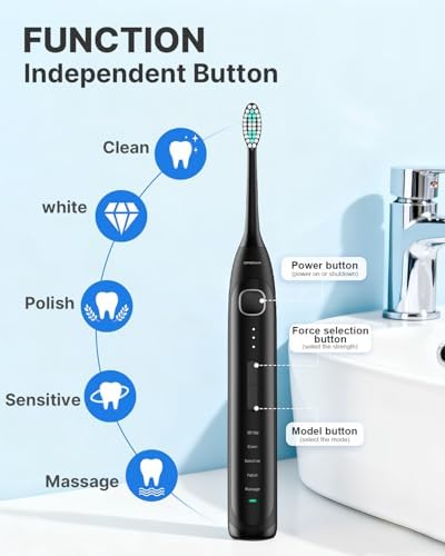 - 5 Customizable Modes: Tailor your oral care routine with 5 modes on our electric toothbrushes—White mode; Whitens teeth; Clean mode; Daily cleaning; Sensitive mode—ensuring optimal performance for every user. Perfect as a travel toothbrush or sonic toothbrush electric for adults alike.