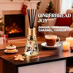 SCENT: Gingerbread Joy/Apple Cinnamon/Balsam Cedar. Experience three holiday scents at once EASY TO USE: You can choose to add or remove the number of reed sticks to match your preferences. When the fragrance fades, simply turn the reed sticks upside down or replace them with new ones RELIEVE STRESS: Reed diffusers create a fresh and elegant atmosphere, allowing you to immerse yourself in soft and soothing aromas that calm, and relieve anxiety. Enjoy pleasant aromas in your home, shelf, office, bedroom, kitchen, living room, bathroom SET INCLUDES: Includes 15 rattan oil diffuser sticks; 3 elegant conical glass bottles with premium natural mixture essential oil (1.7oz 50ml x 3); a concise & generous box. It is recommended to put in 2 to 4 reed sticks per bottle EXCELLENT GIFT IDEA: Elegant design and comforting aroma make it ideal gift for loved ones. Never again will you think choosing a gift is quite a challenge, Whether it is time for a friend or family's birthday, housewarming, or any gift-giving occasion TO DEAR CUSTOMER: Since scent preference can be subjective. Even when bathed in the same scent, some people might think its aroma not strong enough, others might think it's just right