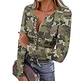 Shusuen Womens Long Sleeve Tops Button Blouse Print Fall Basic Tees Casual Henley T Shirts Slim Fit Trendy Outfits Clothes