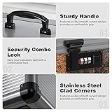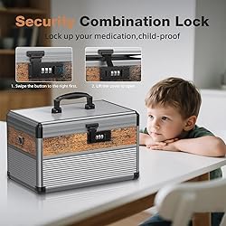 DURABLE & SECURE LOCK BOX: Made of aluminum alloy and MDF with a plastic tray, this box features a crash-proof protection design for enhanced durability and a customizable 3-digit combination lock for keyless access. It securely prevents unauthorized opening by children or others, ensuring the safe storage of medications LOCKABLE STORAGE BOX: perfect Medium Size 12.4x8x8 Inch with code lock、plastic tray、Shoulder Strap,It can be carried by hand or over the shoulder REMOVABLE INNER POCKET: This lockable storage box comes with a removable tray and an inner pocket bag (the small size does not include the pocket bag), helping you neatly organize small items or store medications. It's perfect for keeping your personal belongings sorted and easily accessible while ensuring their security PORTABLE LOCK BOX: This lightweight yet sturdy lock box is designed for portability with a handle and optional shoulder strap (excluded for small size). Perfect for securing medication and valuables (e.g., jewelry, documents) at home, on the go, or outdoors VERSATILE LOCK BOX: This lockable box is ideal for use at home, in clinics, or while traveling. Its combination lock safeguards prescriptions and other personal items, making it a must-have for secure and organized storage anywhere