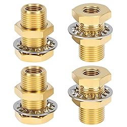 QWORK 1/4 Bulkhead Brass Pipe Fitting Anchor Coupling, 4 Pcs 1/4" NPT Thread, 1,200 PSI Tank Fitting Frame Hose Connector