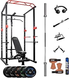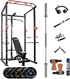 ✅【1000LBS Heavy-Duty Capacity】 Constructed with reinforced steel, this rack supports up to 1000lbs, ensuring maximum safety and stability during intense workouts. Ideal for beginners and experienced lifters alike. ✅【All-in-One Training System】 Combine multiple workout stations into one — includes squat rack, pull-up bar, safety spotter arms, and J-hooks. Perfect for squats, bench press, deadlifts, shoulder press, rows, and more. ✅【Adjustable Height & Versatile Use】 Multiple height levels allow for easy adjustments based on your height or exercise type. Switch between movements quickly and train more efficiently. ✅【Includes 210LB Barbell Set】 Comes with a high-quality Power Cage x 1,7ft Olympic Bar x1,Squat Shoulder Padx1,Weight Bench Press x1,Weight Lifting Hooks x1,210LBs BumperWeight set - 10lbs-2 pairs 15lbs-1pair 25lbs-1pair 45lbs-1pair, Cable MachineAttachments, Straight Rotaing Bar x1, V-Handle bar x1, Tricep Pull Down Rope x1, V-shaped Bar x1. ✅【Space-Saving & Home-Friendly】 Compact footprint fits easily in garages, basements, or home gyms — no more waiting for equipment at the gym. Stay consistent, stay strong.