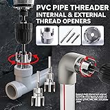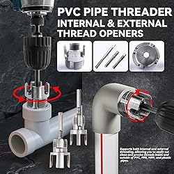 - Yakamoz 3 PCS Pipe Thread Cutting Tool,Integrated Internal & External Pipe Threading Tool,Electric Drill Compatible PVC Pipe Threader Kit,1/2" 3/4" 1’’ Pipe Sizes Rethreading ToolDual Threading: Cuts both internal & external threads.3 Sizes Included: 1/2", 3/4", 1" for common pipe needs.Drill Compatible: Fits 1/4'' hex shank standard electric drills.Durable Steel: Sharp, rust-resistant, long-lasting.For DIY & Pros: Ideal for plumbing & home repair.Specification:Sizes Included: 1/2", 3/4", 1"Shank Type: 1/4" Hex (Electric Drill Compatible)Material: Hardened Carbon SteelPipe Compatibility: PVC, PPR, MPP, PlasticColor: SilverPackage Includes: 3 x Threading Tools (1/2", 3/4", 1")