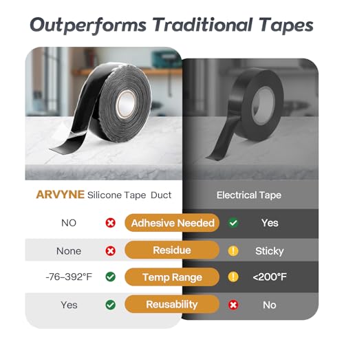 - SELF-BONDING & PERMANENT SEAL – ARVYNE self-fusing silicone tape bonds to itself without adhesive, creating a watertight, airtight, and long-lasting seal. Ideal for emergency repairs in seconds—no residue, no mess.