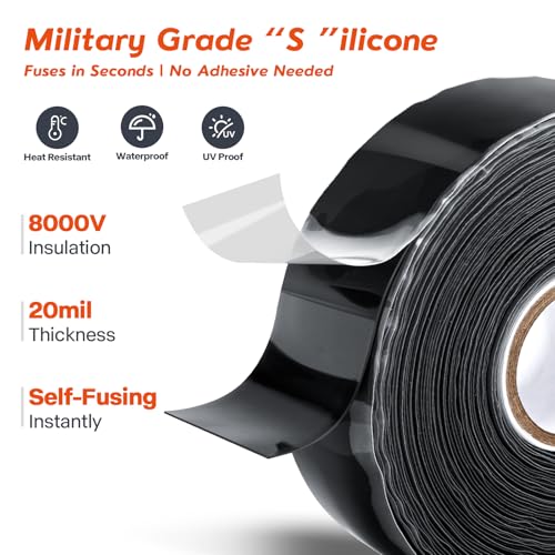 - EXTREME TEMPERATURE & ELECTRICAL INSULATION – Rated for continuous use from -76°F to 392°F and insulates up to 8,000 volts per layer. This silicone tape protects your wiring and hoses in harsh environments.