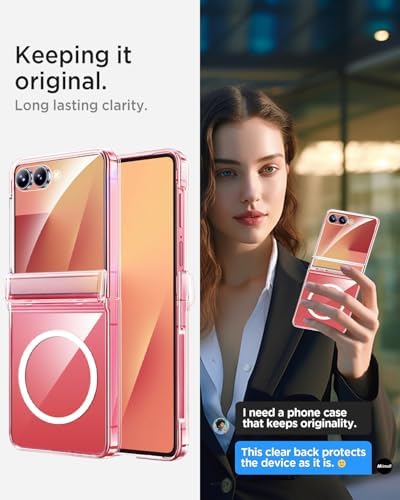 - 【Crystal Clear Transparency Style & Anti-Yellowing】The Clear Magsafe Samsung Galaxy Z Flip7 Case show off your phone's original color and sleek fold with a crystal-clear back that stays virtually invisible. Made from premium, UV-resistant polycarbonate, the Shockproof Phone Case Flip 7 Samsung can maintain long-term anti-oxidation, anti-yellow effect, keeping its glass-like finish as fresh as day one—perfect for flaunting your style on selfies, video calls, or under bright lights.