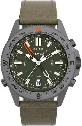 Timex Men's Expedition North Tide Temp Compass 43mm Watch - Brown Strap Green Dial Gunmetal Case