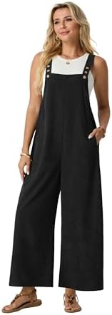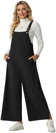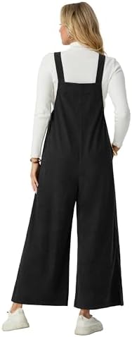 Lepunuo Womens Corduroy Casual Jumpsuits Adjustable Summer Wide Leg Rompers Sleeveless Overalls with Pockets