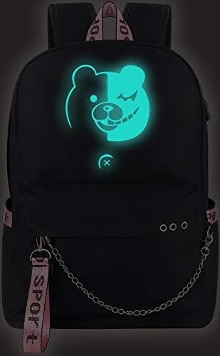 Anime Luminous Backpack 20L Large Capacity Backpack Nylon Laptop Back Pack Casual Daypack with USB Charging Port And Headphone Port Black