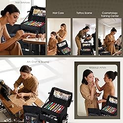 Professional Rolling Makeup Case: The dimensions of the makeup rolling case are 14.5 x 10.4 x 24 inches, and it includes a pull rod that can extend up to 42 inches for ease of use. Its anti-shake structure and sturdy frame provide excellent stability. This case is ideal for nail technicians, makeup artists, pop-up makeup stations, or accessory vendors at flea markets. On-the-Go Spacious 3 Drawers: This luggage is designed with three removable large drawers, including two that are 4 inches deep and one at 6.3 inches deep for larger items. Additionally, it features a substantial Velcro mesh pocket baffle to ensure the drawers stay secure during travel. Versatile Rolling Train Case: The top compartment features a large, removable sponge divider designed to securely hold up to 48 bottles of nail polish in an upright position. When the divider is removed, it easily accommodates larger beauty supplies. With adjustable configurations for various tools, you can organize your items to prevent damage from shaking or falling. Additionally, a makeup pouch is conveniently attached to the lid, allowing for extra storage of brushes and accessories. Multi-Size Side Pockets: Featuring one see-through square pocket, one nylon square pocket, and one large nylon square pocket, this design ensures that all your bottles and travel-sized items are neatly organized, preventing any mess during your mobile beauty work. Smooth and Secure: This rolling makeup case is equipped with four premium 360-degree rotating wheels, ensuring effortless and quiet movement while reducing strain. For added stability, two rear wheels located near the telescopic rod can be locked in place. The wheels are also detachable, making removal or replacement simple if necessary. Premium Oxford Fabric: Made from waterproof Oxford fabric on both the inside and outside, this rolling makeup case provides easy maintenance and water resistance. It serves as a practical present cart that helps to keep your dressing area neat and tidy. With its timeless design, it’s great for preserving memorable moments. This case is an excellent option for cosmetology, nail tech, salons, mobile stylists, wedding planners, or anyone with a large array of supplies.