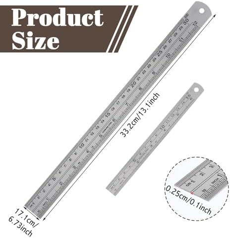 - 【Dual Scale Precision】 Featuring both metric and imperial measurements, these metal rulers offer laser-engraved scales for precise readings. The 6 inch and 12 inch lengths ensure versatility in various tasks, from geometry to crafting, making them essential tools for students and professionals alike.