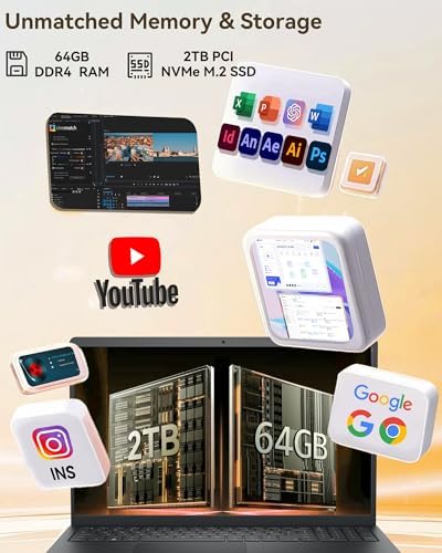 - 💾【Unmatched Memory & Storage】Dell Laptop Computer with 64GB DDR4 RAM and 2TB PCIe NVMe SSD, experience instantaneous app launches, seamless 50+ tab browsing, and rapid file transfers. The enterprise-grade storage offers 3x faster data access than standard SSD.