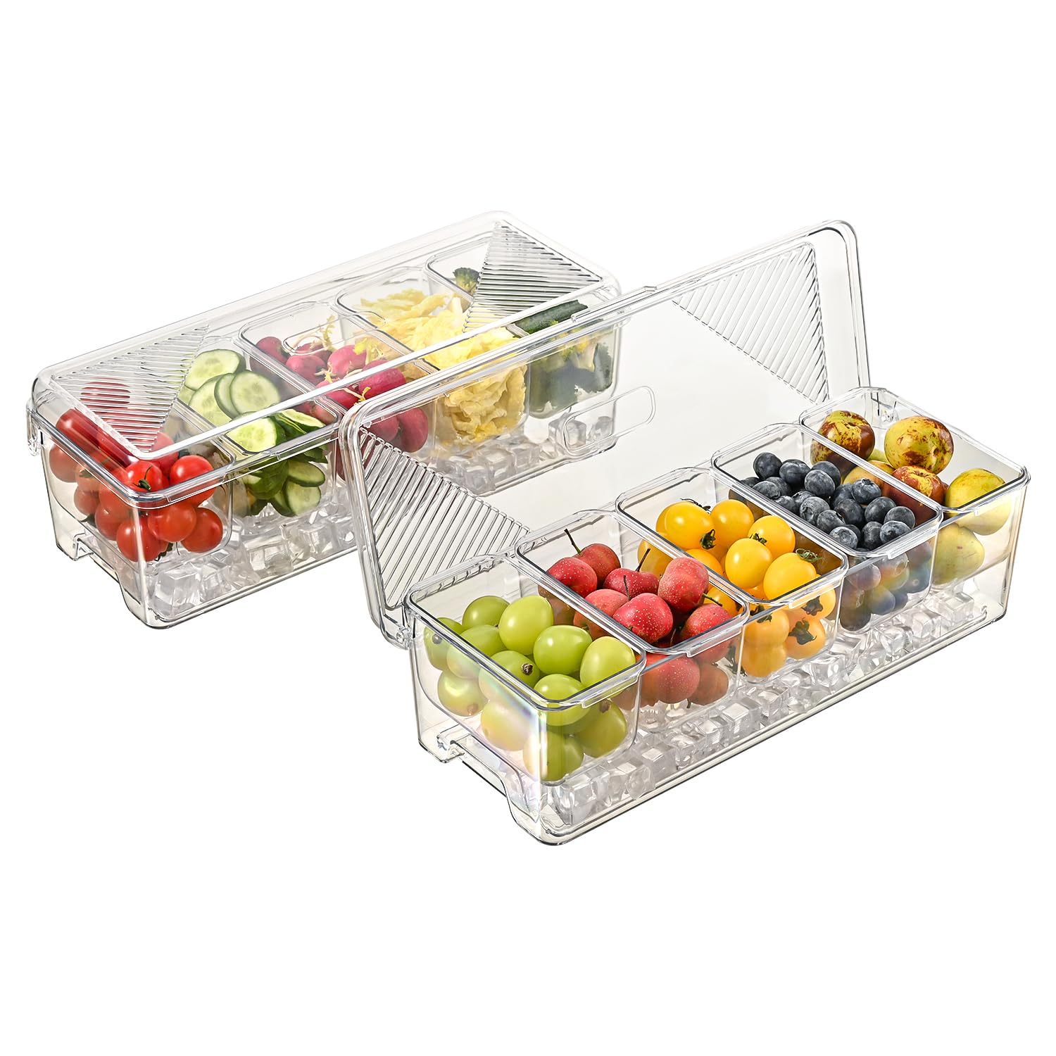 Large Chilled Condiment Caddy,Stackable Chilled Condiment Containers Server with Lids for 5 Removable Compartments (5 Containers, 1 pack)