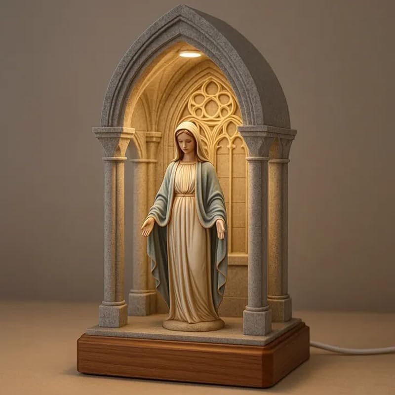 • Virgin Mary LED Devotional Table Lamp -- Let there be peace, light, and the comfort of faith in your home — Amen. Let your space be filled with light, peace, and reverence — this Virgin Mary LED devotional table lamp transforms any corner into a quiet sanctuary for prayer, reflection, and faith.