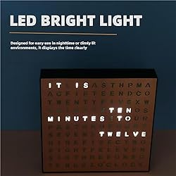 LUMINOUS TEXT TIME DISPLAY: The electronic desk clock features a stunning luminous text display that displays the time elegantly, making it an exceptional piece of contemporary home and office decor. This 3D LED clock is both a functional clock and a stylish decoration for any living room or bedroom. SUPER BRIGHT LIGHT FOR CLEAR READING: Equipped with advanced diffuse reflection LED technology, this LED clock with light provides soft and even illumination, making night reading easier. Its matte black or rose gold surface enhances its design, making it ideal for any home or office style. FIT WITH A FOR SIMPLE USE: Forget complicated setups! With a simple 5-minute gradual setting button and two power options (USB or 3 AA batteries), this electronic desk clock is easy to use, allowing both seniors and children to use it smoothly. MINIMALIST DESIGN THAT REALIZES THE STYLE: Its modern square design, only 3.5 cm thick, allows the LED Word Clock to integrate seamlessly into your desk, bedside table or wall. Available in two colors (black/rose gold), it satisfies various aesthetic preferences without sacrificing functionality. A GIFT CHOICE: Break up with traditional gifts with this 3D LED clock! Made with eco-friendly ABS material and with 195mm diameter, it not only works as an accurate timer, but also as a technological ornament for your home. for personal use or as a special gift.