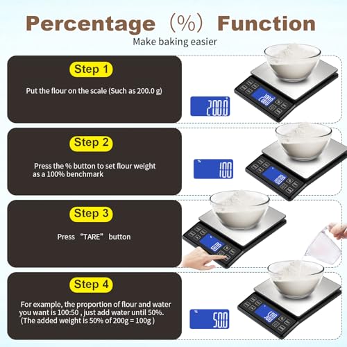 - 【 Efficient Baking Assistant 】Utilize the built-in % percentage function to streamline your baking processes. No more manual calculations—simply input your desired ratio for perfect ingredient proportions every time.