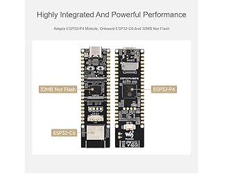 ESP32-P4-WIFI6 High-Performance Development Board with pre-soldered Header Based On ESP32-P4 And ESP32-C6. Highly Integrated And Powerful Performance.Adopts ESP32-P4 Module, Onboard ESP32-C6 And 32MB Nor Flash WiFi 6 And Bluetooth Module.Onboard ESP32-C6 Chip To Extend 2.4GHz Wi-Fi 6 And Bluetooth 5/BLE For ESP32-P4, Using SDIO Interface Protocol For Communication, Stable Connection And Efficient Transmission Supports AI Speech Interaction.Allows Access To Online Large Model Platforms Such As DeepSeek, Doubao, Etc. Features rich Human-Machine interfaces, including MIPI-CSI (with integrated Image Signal Processor), MIPI-DSI, SPI, I2S, I2C, LED PWM, MCPWM, RMT, ADC, UART, TWAI, etc.
