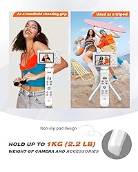 for Sony Tripod with Rechargeable Remote Control - Aodelan Wireless Shooting Grip Mini Tripod with OLED Screen for Vlogging for ZV-E10,ZV-1F,RX100 VII,a6100,a6400,a9 II; Replace Sony GP-VPT2BT(White)
