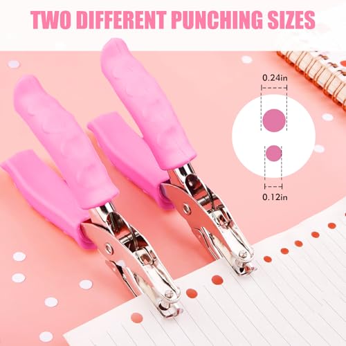 2 PCS Hole Punch, Diameter 1/4" and 1/8" Single Hole Punch, with Pink Soft Grip Hole Puncher Single, for Home, Office and Study, Suitable for Various Cardboard, Labels, and Scrapbooks