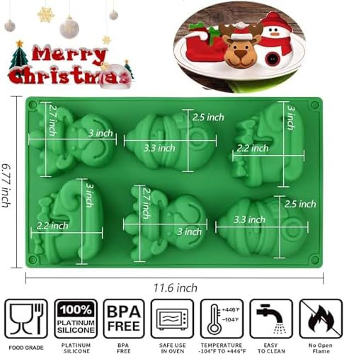 - 🎅 2-PACK LARGE CAPACITY MOLDS – Get double value with two 6-cavity molds (Elk Sleigh Snowman), each cavity holds 5.0 oz – perfect for batch baking, soap crafting, or party favors!