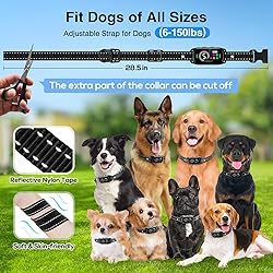 【Suitable for All Dogs】From small puppies to large dogs, our dog training collar is easily adjustable, providing a comfortable and secure fit for your dog. The lightweight design prevents neck strain, and the soft reflective tape keeps your dog safe and visible during nighttime walks. 【5 Humane Training Modes】Our dog bark collar offers 5 customizable modes: beep, vibration, or a combination of both. For more stubborn dogs, there's also a shock mode. The progressive training system ensures your dog doesn't feel uncomfortable while learning, effectively addressing excessive barking. 【Upgraded Protection Mode】The innovative auto-pause function stops correcting after 7 consecutive triggers, giving your dog a 30-second break and preventing overstimulation. This science-backed approach prioritizes your dog's well-being while achieving lasting behavioral change. 【No False Triggers】Our anti barking device for dogs uses AI bark recognition technology combined with motion detection to distinguish your dog's barking from background noise or the barking of other animals. This means corrections are made only when necessary, without unnecessary stress. 【20-Day Battery Life】Thanks to fast-charging technology, you can enjoy weeks of uninterrupted use. The LED display clearly shows the battery level and settings. The magnetic charging feature enhances waterproofing, making the barking collar easy to handle in rain, snow, and muddy roads.