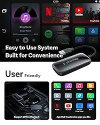 - OTTOCAST Play2Video Ultral – Wireless CarPlay & Android Auto Adapter with YouTube, Netflix, Spotify, IPTV | 5GHz WiFi, Auto Connect, No Delay | Compatible with OEM Wired CarPlay