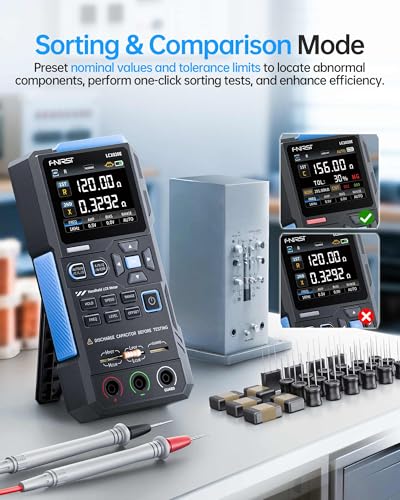 • 【Smart Sorting】ESR Meter with Sorting & Comparison Mode calculates relative error (%) using preset nominal/tolerance (0.1%–99.9%) for accurate component screening. Alerts via sound/LED. Supports Capacitors 1pF–100mF, Resistors 10mΩ–10MΩ, Inductors 1µH–100H