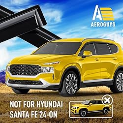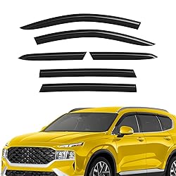 - Our AEROGUYS window visors not only add to your vehicle’s looks, but they have a much more practical purpose. They are one of the most under-rated of all car accessories, but once you have used them, you know just what a difference they make to your ride. Our window visors are manufactured with the flexible and durable polycarbonate. The AEROGUYS window visors are specially engineered by using cutting-edge technology to deflect rain, wind, sunshine, snow and keep your car cooled. The 6-piece set comes with easy to install 3M tape and installation manual. PRODUCT FEATURES: - Condition: 100% Brand New; - Custom fit: for Hyundai Santa Fe 2019-2023; - Package includes: 6 pcs window visor deflectors (2 front/2 middle/2 rear), prep pad, installation manual; - Color: Smoked black tinted; - Material: High quality durable polycarbonate. Features: - Fresh air even while raining; - Reduces sun glare; - Gives your vehicle a cool upgraded look; - Car wash friendly; - Easy tape-on installation; No-drilling required; - Visors are secured with 3M tape. We have visors for most car models. Pick your car make and model and the type of visor you want. We offer a 100% satisfaction guarantee! Order now and get our window rain guards right away!