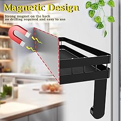 Multifunctional Storage - This kitchen organizer features a shelf and a toilet paper holder. The upper shelf can be used to store condiments, baking supplies, cleaning products, bottles and jars, or other items, while the lower shelf can be used to hang paper napkins. This two-in-one storage design maximizes storage space, making it especially suitable for small kitchens, RVs, garages, or spaces with limited room Removable Straw Holder + Hooks - The detachable straw holder can store not only straws but also straw cleaning brushes, stirrers, cutlery, etc., making it particularly suitable for beverage and coffee lovers for easy access. It also comes with two detachable hooks, perfect for hanging dish brushes, towels, gloves, and other lightweight items Strong Magnetic Attachment - Our magnetic paper towel holder uses high-quality magnets that firmly adhere to magnetic surfaces such as refrigerators and washing machines. The magnetic design allows for easy movement and repositioning, making it a convenient storage solution for any space Versatile - This magnetic paper towel holder with shelf is suitable for various settings, such as home kitchens, restaurants, cafes, or office pantries. It effectively utilizes space, prevents countertop clutter, and keeps everything organized and easily accessible. Its simple and stylish appearance complements a variety of interior design styles Best Service - We are committed to providing customers with high-quality products, if you have any questions or suggestions about our magnetic paper towel holder, please feel free to contact us