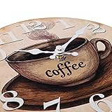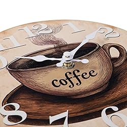 Charming Coffee Cup Theme Kitchen Clock -- Our rustic retro decorative clock features a lovely coffee theme.This 12-inch brown beauty adds cozy charm to any kitchen or cafe. Clear Readability & Durable Glass -- Made of solid tempered glass.The solid tempered glass construction ensures long-lasting durability and style.The glass clock with a back cover, it's waterproof construction allows it to be hung in humid areas like indoor or outdoor wall. Silent & Accurate Time -- Enjoy complete quiet with our silent non-ticking mechanism. The analog quartz movement ensures precise timekeeping without any disturbing sounds. Versatile Multi-Space Decor -- Perfect for kitchens, coffee bars,cafes, coffee shops, dining rooms, lounges, pubs, restaurants or coffeehouse. This decorative clock complements any home office cafe farmhouse or retro rustic decor style. Easy Setup -- This battery-operated clock uses just one AA battery (not included).