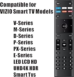 Compatibility Models : XRT136 TV Remote Compatible with all VIZIO smartcast V Series M Series D Series P Series PX Series E Series Smart TVs.Compatible with XRT140 / XRT260 / XRT136 / XRT270 / XRT112 / XRT122 / XRT302 / XRT135 / XRT510 / XRT500 / XRT100 / VR1 / VR2 / VR10 / VR15 and More VIZIO Smart TV Remote Control model Free of Setup Requirements : Work right out of the box and without program. Put 2 AAA batteries (Not included) to replace your original remote control perfectly Short Keys Launch : The remote features 6 shortcut buttons, giving you quicker access to your favorite apps No Delay Response: Strongest signal by Infrared technology further transmission for multi-angle induction. Precisely control far from 40 feet.Fastest response not over 0.1 second to your TV, It supports over 150,000 clicks approved test