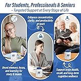 Enhanced Memory & Focus with Dual Choline Sources – Our brain supplements for memory and focus combine Alpha-GPC (300mg), Citicoline (150mg), and Phosphatidylserine (100mg) to help support healthy acetylcholine activity, a key neurotransmitter for memory, learning, and focus. This cognitive supplement supports mental clarity and long-term brain performance for students, professionals, and seniors seeking daily memory supplements support 22-IN-1 Natural Brain Health Support with Herbal Blend – Experience the synergy of 200mg Bacopa Monnieri, 200mg Lion’s Mane Mushroom, 150mg Rhodiola Rosea, Ginkgo Biloba, and Curcumin, ingredients traditionally used to support memory, focus, and mental clarity. This brain health supplement for adults helps protect against oxidative stress, support brain cell health and healthy circulation, promoting calm focus and cognitive vitality for both mind and body Complete Brain Vitamins for Lifelong Cognitive Wellness – Our advanced formula combines 200mg DHA, 2000mcg Vitamin B12, D3, B6, 680mcg Folate, Magnesium, and Zinc to provide essential nutrients that support brain energy, cell health, and cognitive vitality. These brain health supplements for seniors and women help maintain sharp thinking, emotional balance, and healthy cognitive aging. This memory supplement for brain health is suitable for all ages, from students to seniors Balanced Energy & Focus without Jitters or Crash – Unlike harsh stimulants, our focus supplement provides clean, sustained mental energy with 150mg caffeine from green tea and 100mg L-Theanine, helping promote calm alertness without overstimulation. Perfect for students, professionals, and gamers, this brain booster supplement helps support focus, alertness, and cognitive performance for smooth, balanced energy throughout the day Innovative Brain Booster with NMNH & Enhanced Absorption – Go beyond traditional memory supplements with NMNH, a next-generation nutrient that helps support cellular energy and healthy aging, combined with black pepper extract to enhance absorption. This brain booster supplement supports focus, productivity, and long-term cognitive wellness, ideal for adults, professionals, and seniors seeking advanced brain health support