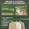 - Easy to Fasten Clothesline: This portable laundry line comes with 2 heavy-duty stainless steel climbing hooks and 2 ratchet wheels, enabling you to easily fasten this clothesline almost anywhere in seconds. such as indoors, outdoors, in the backyard, on the balcony, and so on